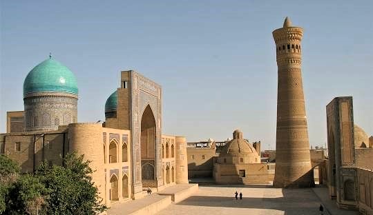 Bukharas centrum är fullt av historiska platser, från det enkla till det utsmyckade. Bukhara byggdes på en oas, så att vatten till denna ökenstad tillhandahölls genom dammar, varav den sista återstående är Lyabi-Hauz. Själva dammen är omgiven av moskéer och madrassor, och när man fortsätter längs turen ser man att det finns en upplevelse runt varje hörn. Vid sidan av Lyabi-Hauz-ensemblen är Chor-Minor Madrasah (med dess utmärkande fyra torn) och Kalan-minareten (en av de få strukturerna i Bukhara som inte förstördes av mongolerna) några av de mest kända strukturerna i Bukhara. Ett annat viktigt och symboliskt stopp är fästningen Ark, som hyste generationer av kungafamiljer och nu är ett historiskt museum.